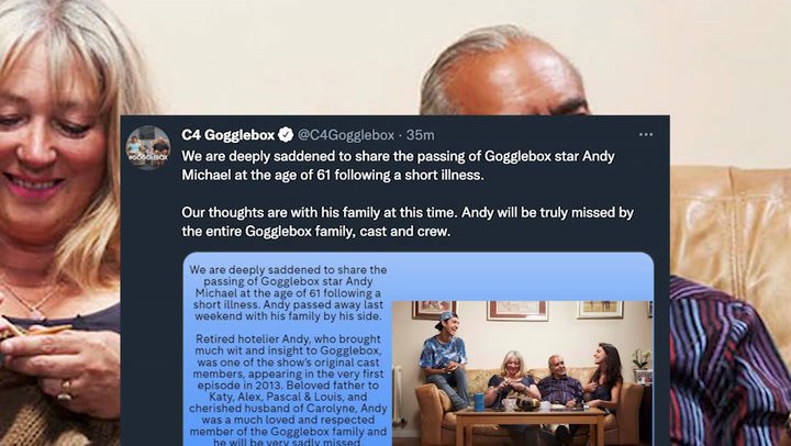 Co-stars fans and Channel 4 have paid tribute to the late star The cast and crew of Gogglebox have paid tribute to star Andy Michael after news of. Andy Michael who was a big hit on Channel 4 show Gogglebox has died at the of 61 his family have said in a statement. Gogglebox star Andy Michael has died aged 61.