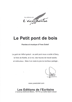 Cet article nest plus disponible chez le vendeur Di-arezzo. May 5 Le petit pont de bois - Yves Duteil. Quon traversait naguère Pour passer la rivière Tout près de la maison Le petit pont de bois.