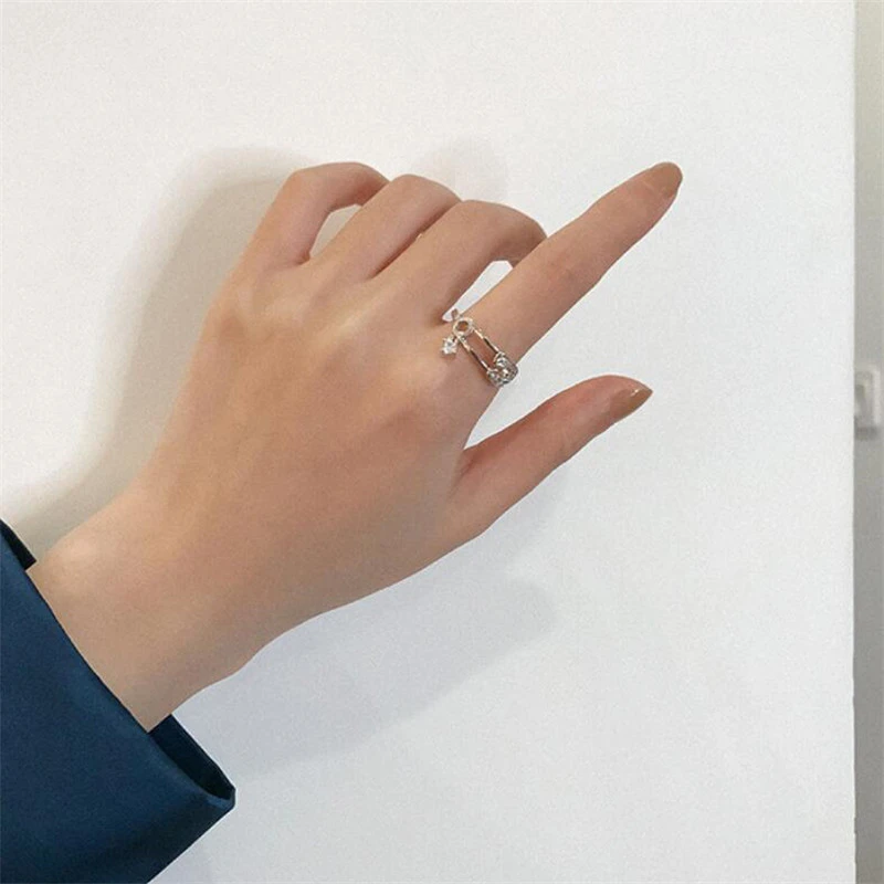 New Creative Style Silver Pin Paper Clip Shape Rhinestone Adjustable Open Ring For Women Fashion Unique Design Jewelry Wholesale Rings Aliexpress